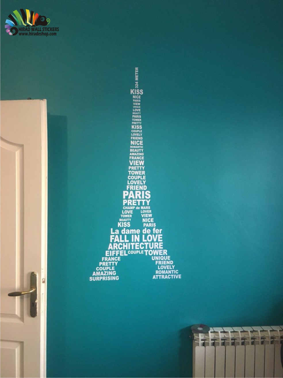 استیکر آژانس هواپیمایی و ساختمان و سازه های معروف فرانسه برج ایفل پاریس با طرح نوشته France Paris Eiffel Tower Wallstickers کد h044