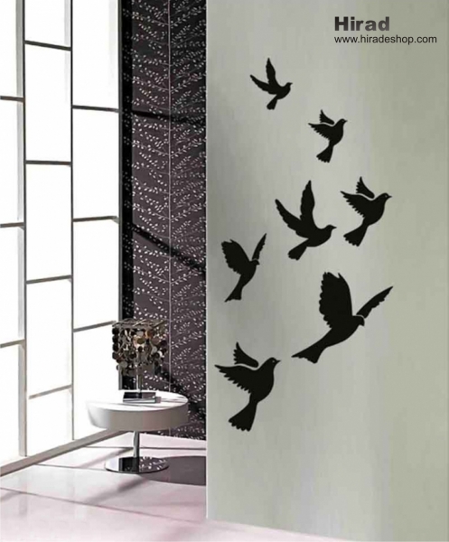 برچسب دیواری پرواز کبوتر . از تعدادی کبوتر با اندازه های مختلف تشکیل یافته که در در حال پرواز میباشند . شما با توجه به سلیقه خودتان میتوانید کبوترهارا چیدمان کنید . رنگ بندی و ابعاد این طرح قابل تغییر میباشد و شما میتوانید رنگ مورد علاقه خود را در قسمت رنگ بندی استیکر بیابید .برای قرینه نمودن این برچسب ابتدا به قسمت جهت استیکر بروید و قرینه این برچسب را انتخاب نمایید. این محصول در سایز70*150 میباشد.این سایز ها،سایز های اجراء شده بنا به چیدمانی که در تصویر مشاهده میکنید،میباشد. لازم به ذکر است با تغییر در چیدمان این سایز ها نیز تغییر خواهند کرد.