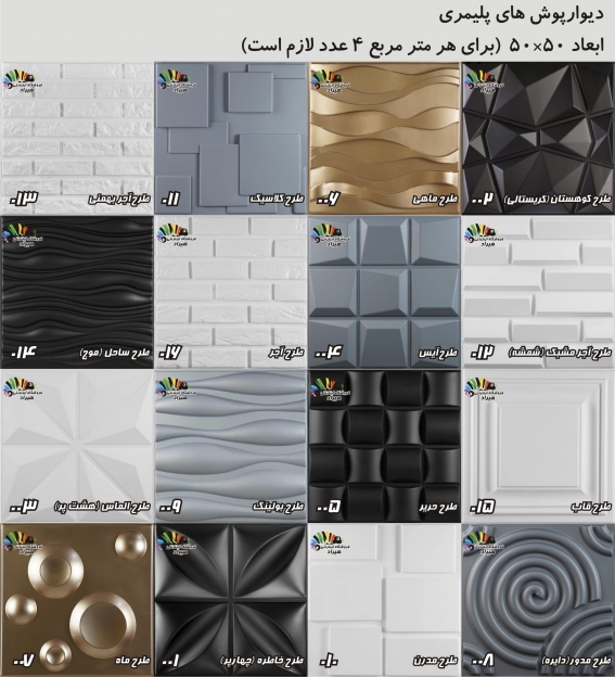 پنل پليمري سه بعدي (قابل شستشتو،آنتي باكتريال،كندسوز،قابليت رنگپذيري،نصب سريع و آسان،طرحهاي مختلف)