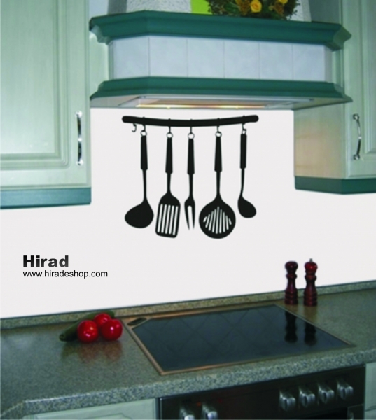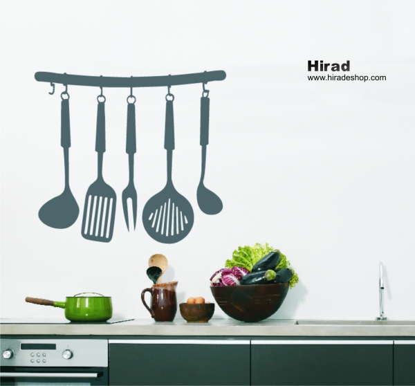 برچسب دیواری آویز کفگیر و قاشق آشپزخانه . این برچسب طرحی از آویز کفگیر و قاشق میباشد که بسیار طبیعی میباشد . این بچسب برای قسمت های مختلف آشپزخانه بسیار زیبا میباشد . رنگ این طرح قابل تغییر میباشد و بنا به سلیقه خود میتوانید رنگ مورد نظر را انتخاب نمایید .شما میتوانید رنگ مورد نظر خود را در قسمت رنگ بندی استیکر بیابید .